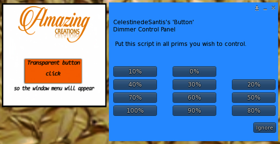 One is the Amazing Creations Transparency Hud for the fabric, meaning you can set it as sheer as you dare! You can actually make the dress appear removed when the 0% is used without actually having to detach the dress itself 😉