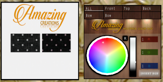 The third Amazing Creations Hud allows tinting on various parts of the dress to create whatever look or mood! There is an easy to read instruction note card on how all three huds work to achieve the look you’re wanting included in the purchase.