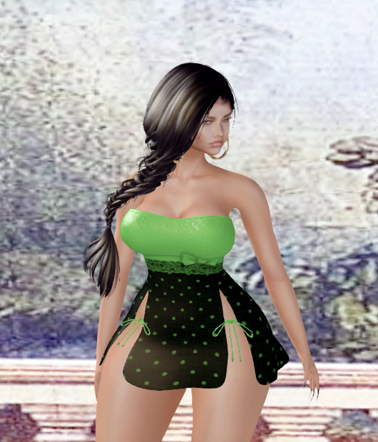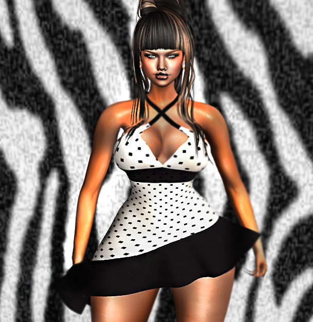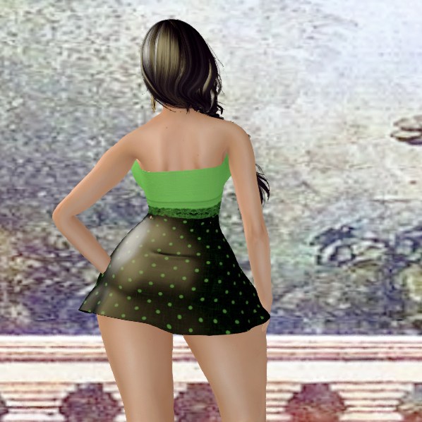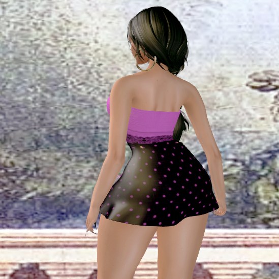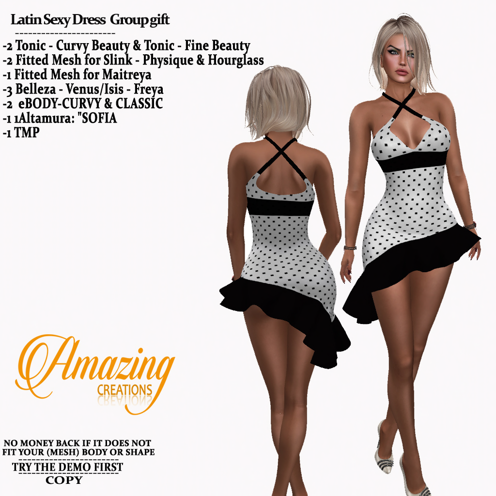 This dress comes in the Polka Dot fabric only and is copy only. Its part of the Group Gifts available by AmAzInG CrEaTiOnS . Its made of good quality mesh and I would recommend this as a spicey option to dressing up for Second Life.